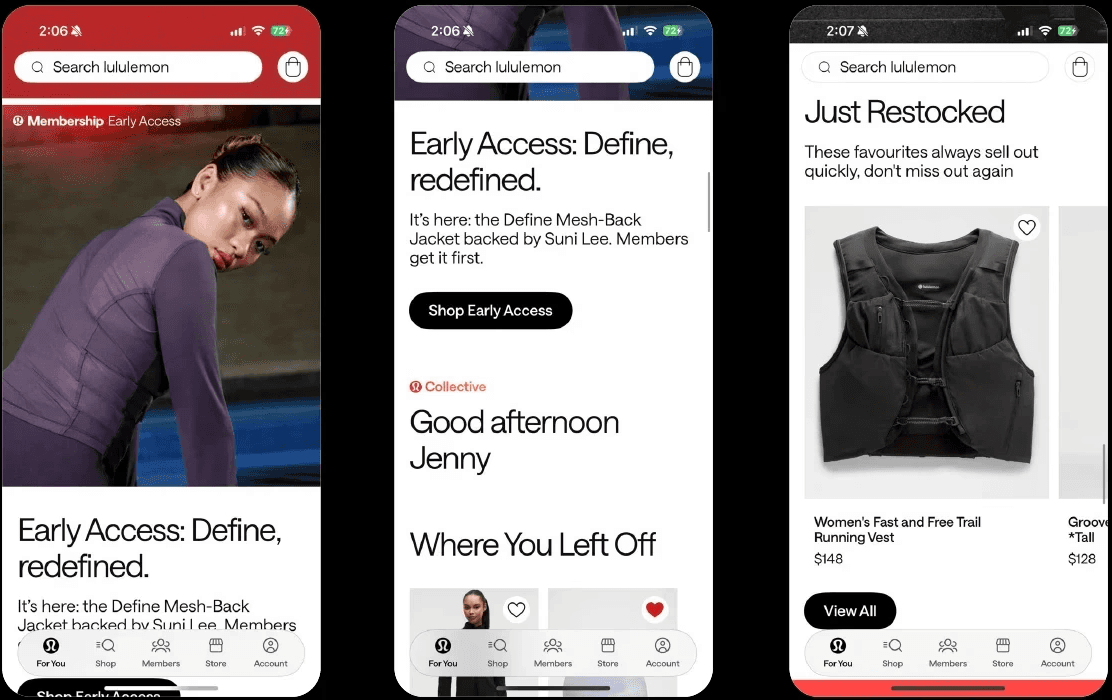 We analyzed the Lululemon mobile app and conducted a competitive review to identify opportunities for improvement.