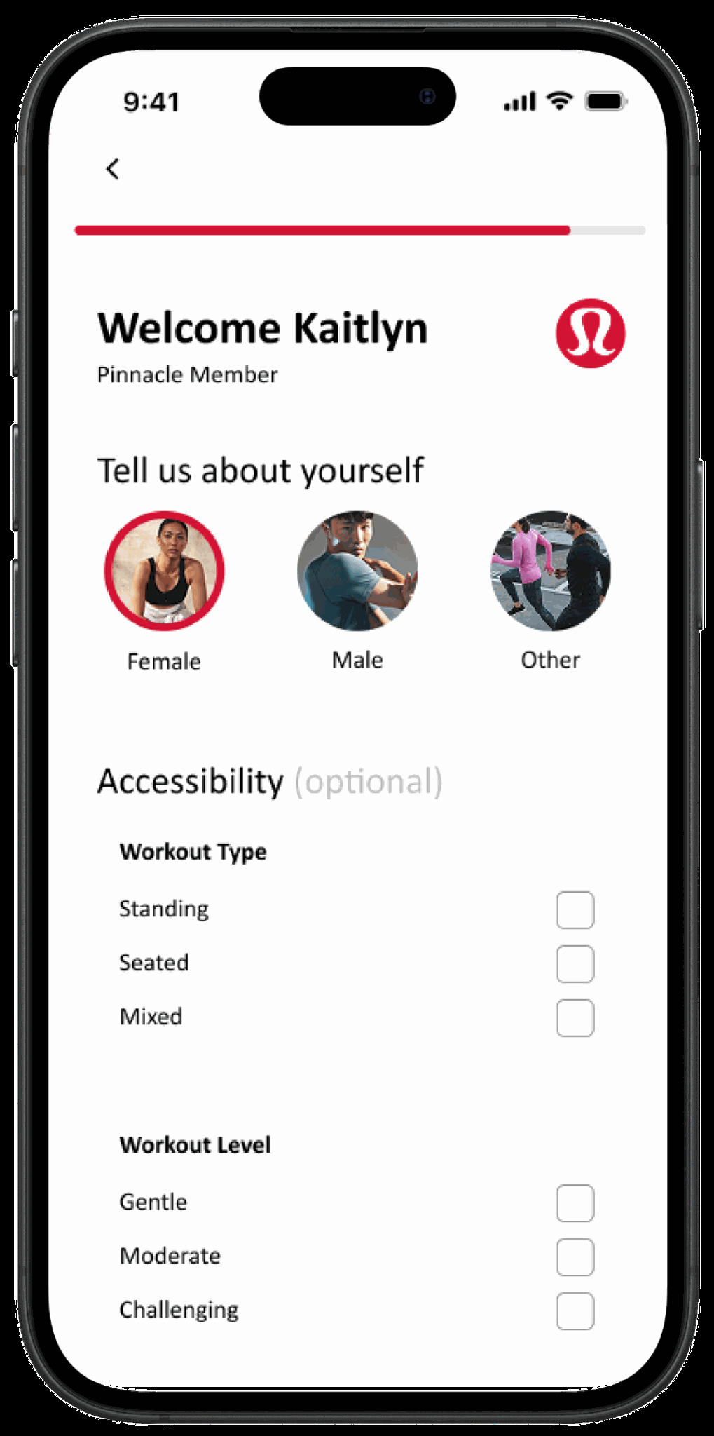 We analyzed the Lululemon mobile app and conducted a competitive review to identify improvement opportunities. Based on our findings, we focused on enhancing onboarding to better personalize the “For You” section.